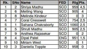 As part of its drive to support the take up of chess by women and girls, the club was pleased to host another She Plays To Win (SPTW) event in conjunction with International Master Lorin D’Costa during the February half-term. The event was made up of two 5 round Swiss-paired tournaments: one for FIDE rated players and one for Chess Scotland (CS) rated players. David Deary was Chief Arbiter and general support was provided by Jenny Wilson and Ian Whittaker.